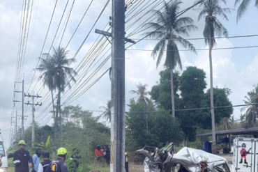 เมื่อเวลา 10.30 น. วันที่ 20 ก.พ. 2569 เจ้าหน้าที่ตำรวจ สภ.ธงชัย ได้รับแจ้งเหตุรถยนต์เสียหลักพุ่งลงข้างทางชนเสาไฟฟ้า มีผู้เสียชีวิตหลายราย บริเวณถนนเพชรเกษม (ขาขึ้นกรุงเทพฯ) กม.370+700 หมู่ 2 บ้านหนองจันทร์ ต.ชัยเกษม อ.บางสะพาน จ.ประจวบคีรีขันธ์ หลังรับแจ้ง จึงเดินทางเข้าตรวจสอบ พร้อมประสานแพทย์เวรโรงพยาบาลบางสะพาน เจ้าหน้าที่มูลนิธิสว่างราษฎร์ศรัทธาธรรมสถาน และหน่วยกู้ชีพ…
