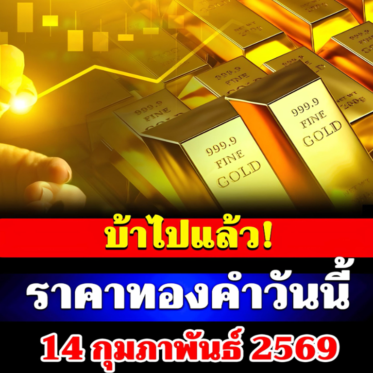 ราคาทองคำวันนี้ 14 กุมภาพันธ์ 2569 โดยสมาคมค้าทองคำ ประกาศราคาทองครั้งที่ 1 ประกาศครั้งเดียว เมื่อเวลา 09.04 น. ปรับตัวเพิ่มขึ้นพรวดเดียว 900 สู่บริเวณ 74,200 บาท
