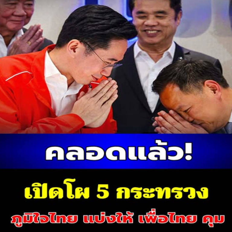 รายงานระบุว่า พรรคภูมิใจไทยในฐานะแกนนำจัดตั้งรัฐบาล มีแนวโน้มจะกำกับดูแลกระทรวงหลักด้านเศรษฐกิจและความมั่นคง ขณะที่สัดส่วนกระทรวงที่จะจัดสรรให้พรรคเพื่อไทย เบื้องต้นคาดว่า มี 5 กระทรวง ประกอบด้วย