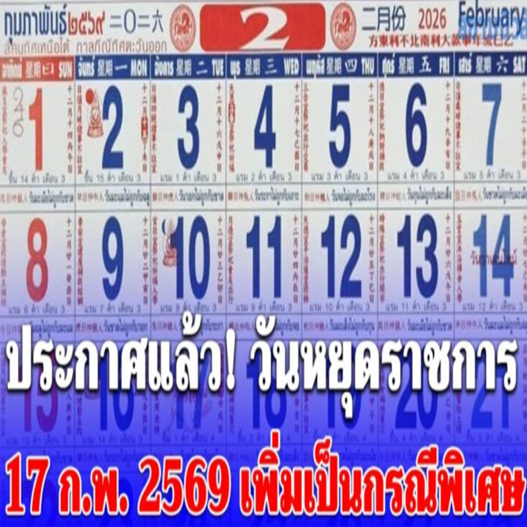 ขณะเดียวกัน เพจประชาสัมพันธ์ของจังหวัดสงขลา ได้เผยแพร่ประกาศยืนยันว่า วันที่ 17 กุมภาพันธ์ 2569 เป็นวันหยุดราชการในพื้นที่จังหวัด เนื่องในวันตรุษจีน ตามหลักเกณฑ์ที่กำหนดไว้