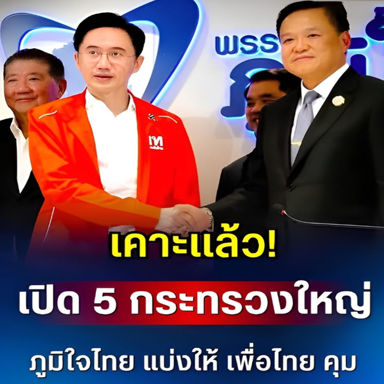 ในส่วนของพรรคเพื่อไทย มีรายงานว่า ได้รับการจัดสรร 5 กระทรวง ได้แก่