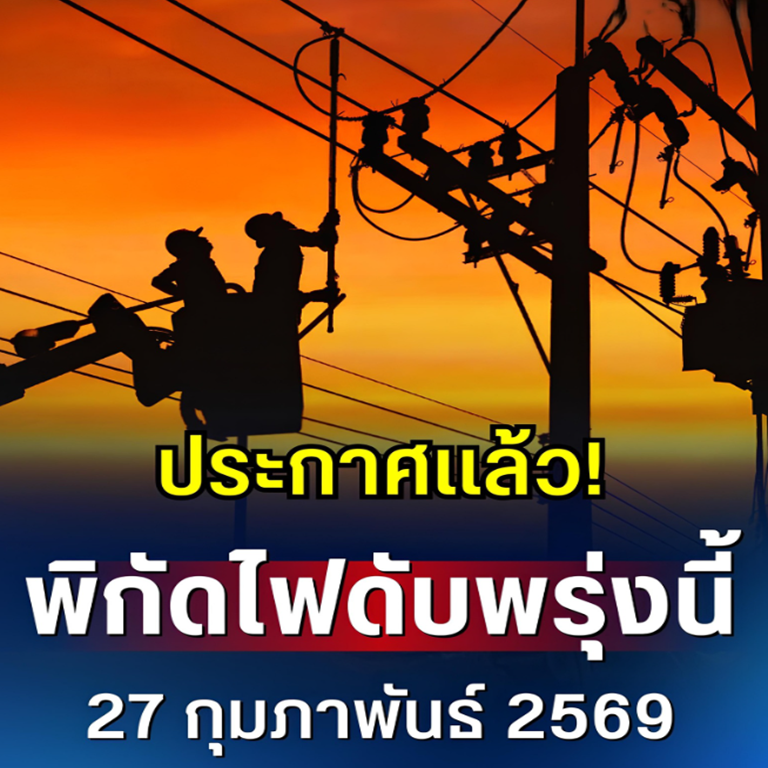 เปิดพิกัดไฟดับพรุ่งนี้ 27 กุมภาพันธ์ 2569…ดูเพิ่มเติม!!
