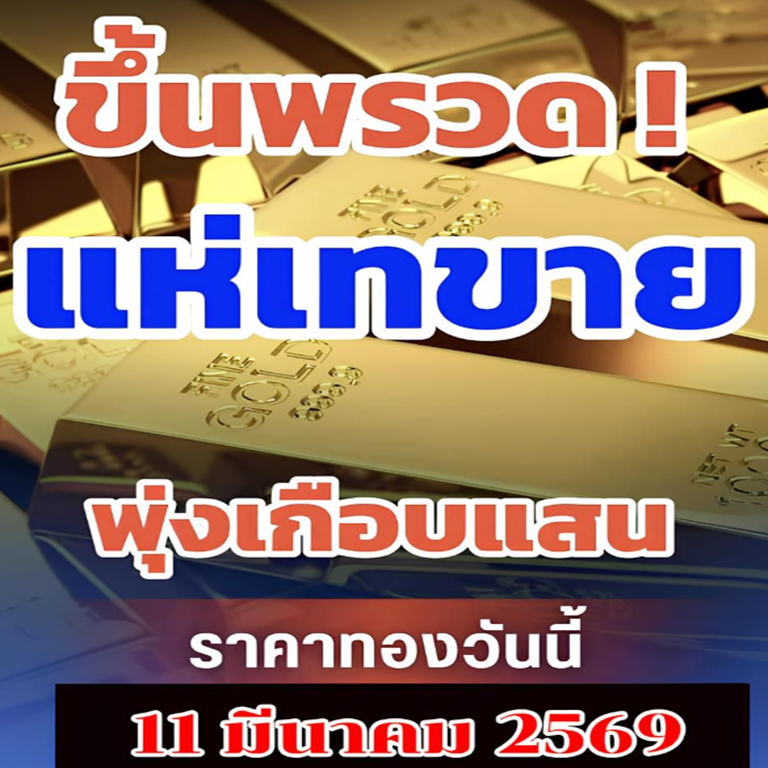 สมาคมค้าทองคำ ประกาศราคาทองคำครั้งที่ 1 (เปิดตลาด) เมื่อเวลา 09.03 น. ของวันพุธที่ 11 มีนาคม 2569 โดยราคาทองคำในประเทศปรับตัวเพิ่มขึ้น 200 บาท จากวันก่อนหน้า ส่งผลให้ราคาทองคำขยับขึ้นตามทิศทางตลาดโลกที่ยังคงอยู่ในระดับสูง