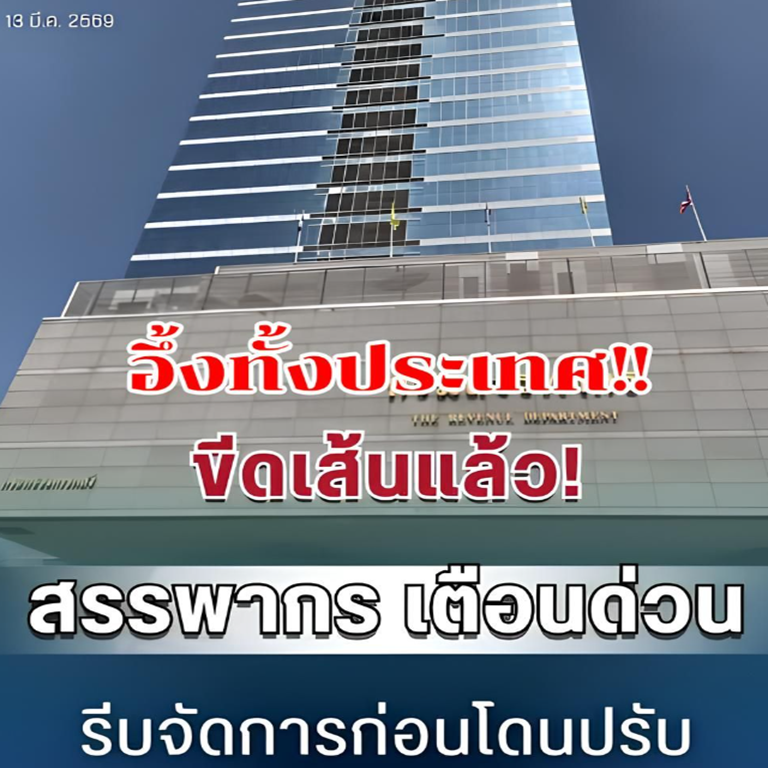 วันที่ 13 มีนาคม 2569 กรมสรรพากร แจ้งเตือนผู้มีเงินได้ทั่วประเทศ เร่งยื่นภาษีปี 2568 ก่อนหมดเขต รักษาสิทธิประโยชน์ของตนเอง โค้งสุดท้าย สำหรับผู้มีเงินได้ที่ยังไม่ได้ดำเนินการยื่นภาษี ประจำปีภาษี 2568