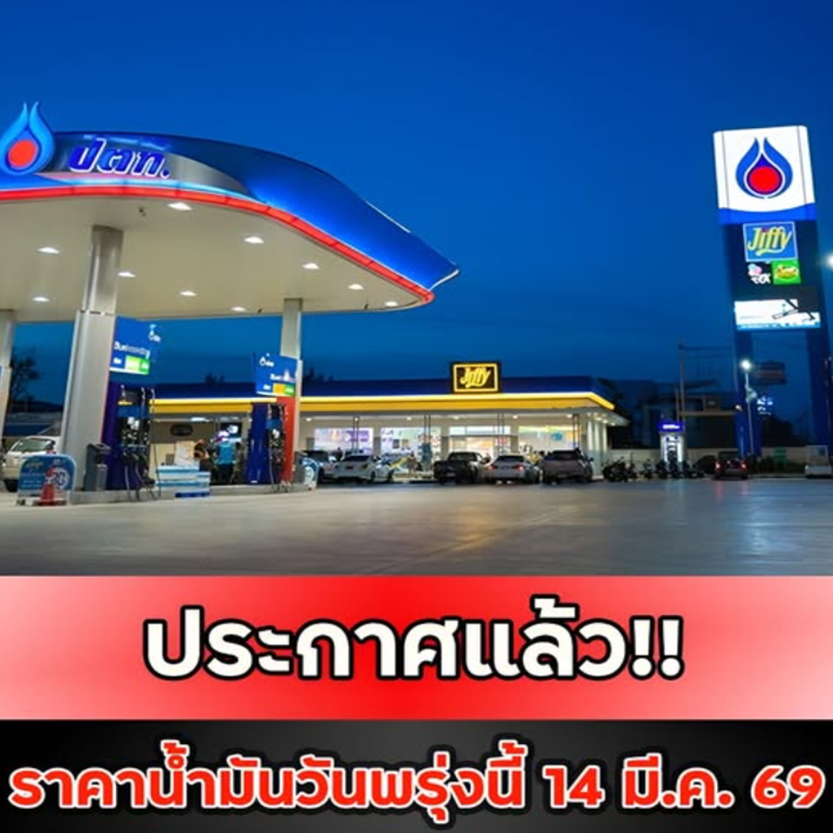 ประกาศแล้ว!! ราคาน้ำมันวันพรุ่งนี้ 14 มี.ค. 69…ดูเพิ่มเติม