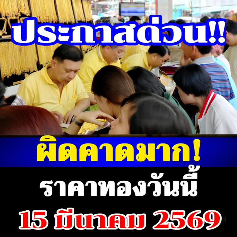 ราคาทองคำวันนี้ 15 มีนาคม 2569 โดย สมาคมค้าทองคำ ประกาศราคาทองครั้งที่ 1 (เปิดตลาด) เมื่อเวลา 09.04 น. ปรับลงพรวดเดียว 550 บาท สู่บริเวณ 77,300 บาท