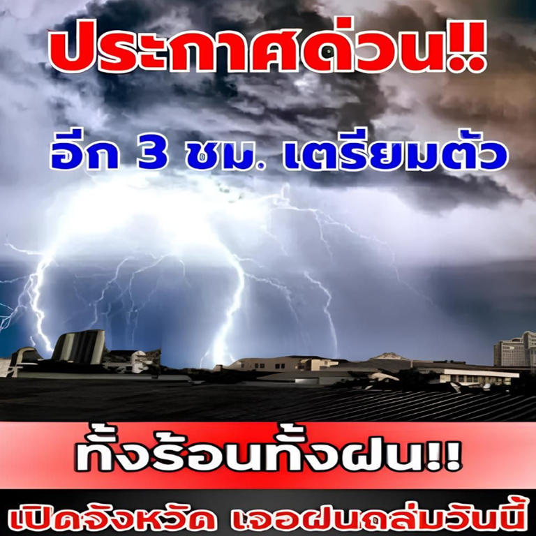 24 เมษายน 2569 พยากรณ์อากาศ 24 ชั่วโมงข้างหน้า ประเทศไทยตอนบนจะมีพายุฤดูร้อนเกิดขึ้น โดยมีลักษณะของพายุฝนฟ้าคะนอง ลมกระโชกแรง ลูกเห็บตก และฝนตกหนักบางแห่ง รวมถึงอาจมีฟ้าผ่าเกิดขึ้นได้บางพื้นที่ เนื่องจากบริเวณความกดอากาศสูงหรือมวลอากาศเย็นจากประเทศจีนจะแผ่ลงมาปกคลุมภาคตะวันออกเฉียงเหนือ
