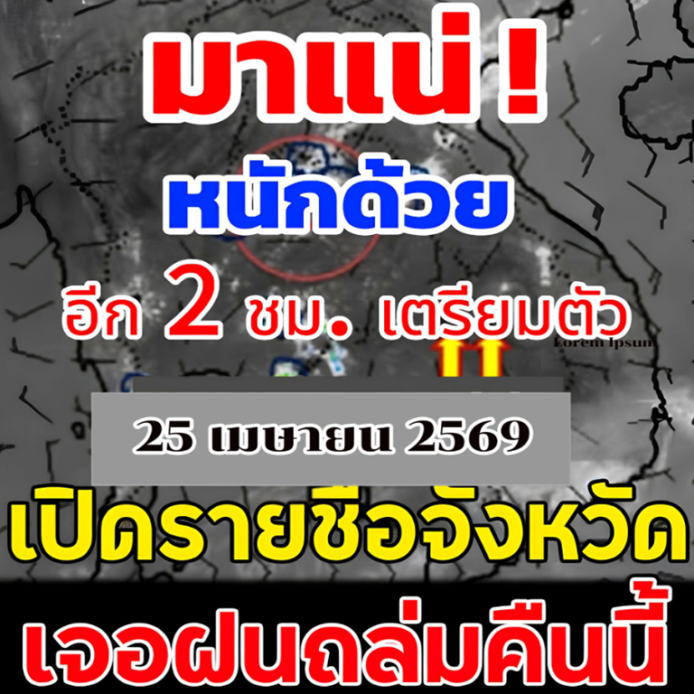 25 เมษายน 2569 พยากรณ์อากาศ 24 ชั่วโมงข้างหน้า ภาคตะวันออกเฉียงเหนือ ภาคเหนือ ภาคกลาง รวมทั้งกรุงเทพมหานครและปริมณฑล และภาคตะวันออก จะมีพายุฤดูร้อนเกิดขึ้น โดยมีลักษณะของพายุฝนฟ้าคะนอง ลมกระโชกแรง ลูกเห็บตก และฝนตกหนักบางแห่ง รวมถึงอาจมีฟ้าผ่าเกิดขึ้นได้บางพื้นที่ เนื่องจากบริเวณความกดอากาศสูงหรือมวลอากาศเย็นจากประเทศจีนแผ่ลงมาปกคลุมภาคตะวันออกเฉียงเหนือ และทะเลจีนใต้ ในขณะที่ประเทศไทยตอนบนมีอากาศร้อน ขอให้ประชาชนในบริเวณดังกล่าวระวังอันตรายจากพายุฤดูร้อน โดยหลีกเลี่ยงการอยู่ในที่โล่งแจ้ง ใต้ต้นไม้ใหญ่ สิ่งปลูกสร้าง และป้ายโฆษณาที่ไม่แข็งแรง สำหรับเกษตรกรควรเสริมความแข็งแรงให้ไม้ผล และเตรียมการป้องกันความเสียหายที่อาจเกิดขึ้นกับผลผลิตทางการเกษตรและสัตว์เลี้ยง รวมทั้งดูแลรักษาสุขภาพในช่วงที่สภาพอากาศเปลี่ยนแปลงไว้ด้วย