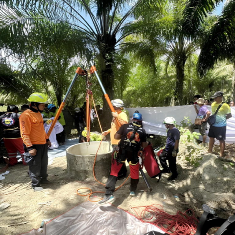 ทางด้านการดำเนินงานกู้ภัยนั้นถือเป็นภารกิจที่มีความเสี่ยงสูง เนื่องจากเป็นพื้นที่อับอากาศ (Confined Space) ปภ.พังงา จึงได้ส่งชุดเผชิญเหตุสถานการณ์วิกฤต (ERT) พร้อมอุปกรณ์สนับสนุนอากาศและเครื่องมือกู้ภัยครบมือ ลงพื้นที่บูรณาการร่วมกับภาคีเครือข่ายกู้ภัยจากหลายจังหวัด ประกอบด้วย ทีมกู้ภัยระนองสงเคราะห์, มูลนิธิกุศลศรัทธาสุราษฎร์ธานี, กู้ภัยสว่างเมฆาตะกั่วป่า และทีมตอบโต้ภัยพิบัติตะกั่วป่า โดยเจ้าหน้าที่ต้องใช้ความระมัดระวังอย่างสูงสุดในการลงไปก้นบ่อเพื่อนำร่างผู้เสียชีวิตขึ้นมา เนื่องจากสภาพอากาศที่ร้อนจัดและอากาศก้นบ่อที่มีอยู่อย่างจำกัด