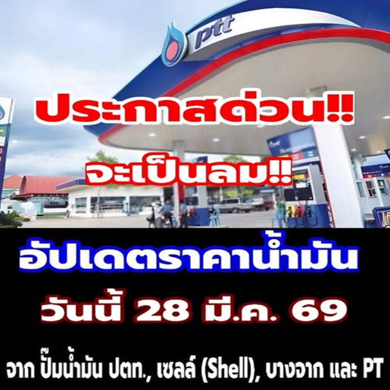 ประกาสด่วน!! ราคาน้ำมันวันนี้ 28 มี.ค. 69…
