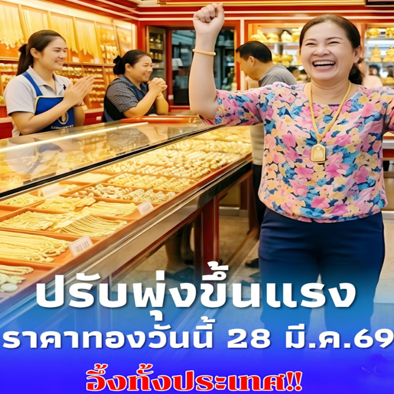 ราคาทองล่าสุดประจำวันเสาร์ที่ 28 มีนาคม 2569 ประกาศครั้งเดียว เมื่อเวลา 09.00 น. ปรับตัวเพิ่มขึ้นพรวดเดียว 1,000 บาท สู่บริเวณ 70,100 บาท