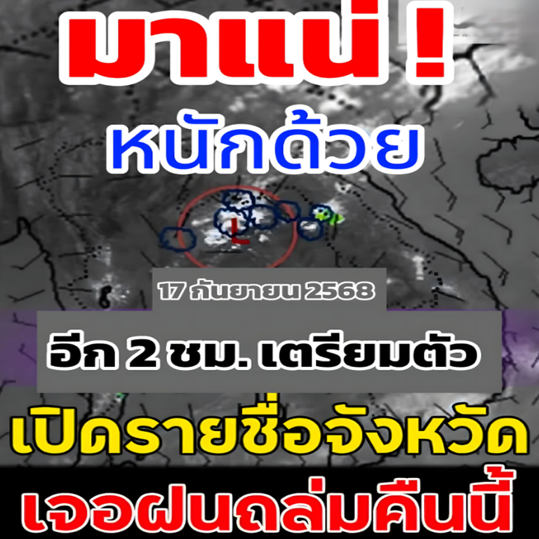 สภาพอากาศวันนี้ วันที่ 17 ก.ย. 2568 กรมอุตุนิยมวิทยา พยากรณ์อากาศ 24 ชั่วโมงข้างหน้า