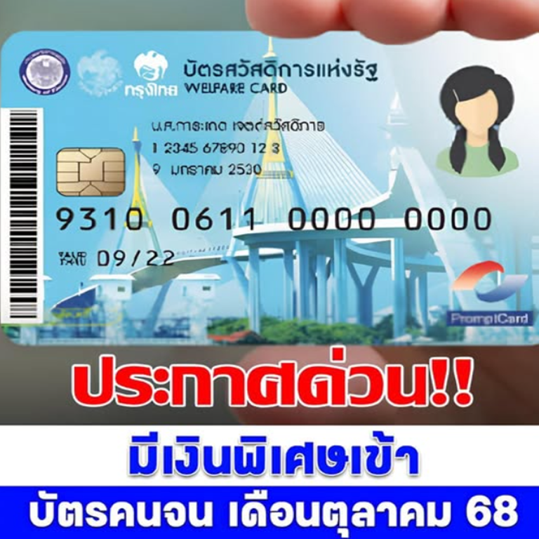 บัตรสวัสดิการแห่งรัฐ ได้รับเงินวันที่ 20 ตุลาคม 2568