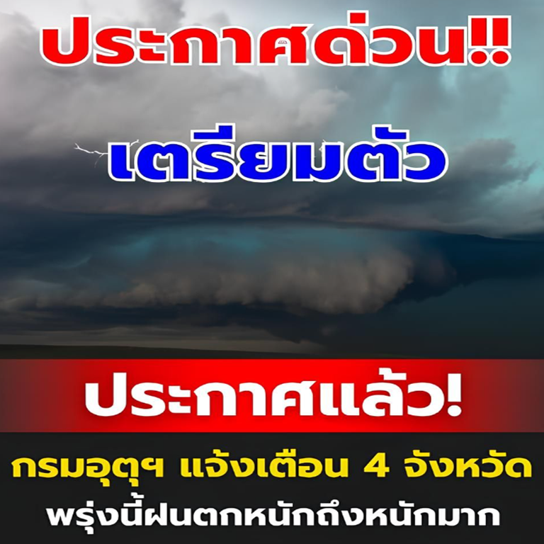 ประกาศแล้ว!!! กรมอุตุฯ แจ้งเตือน 4 จังหวัด พรุ่งนี้ฝนตกหนักถึงหนักมาก