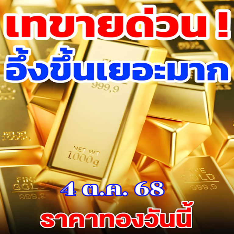 ราคาซื้อขายทองคําในประเทศชนิด 96.5% วันเสาร์ที่ 4 ตุลาคม 2568 (ประกาศครั้งเดียว)
