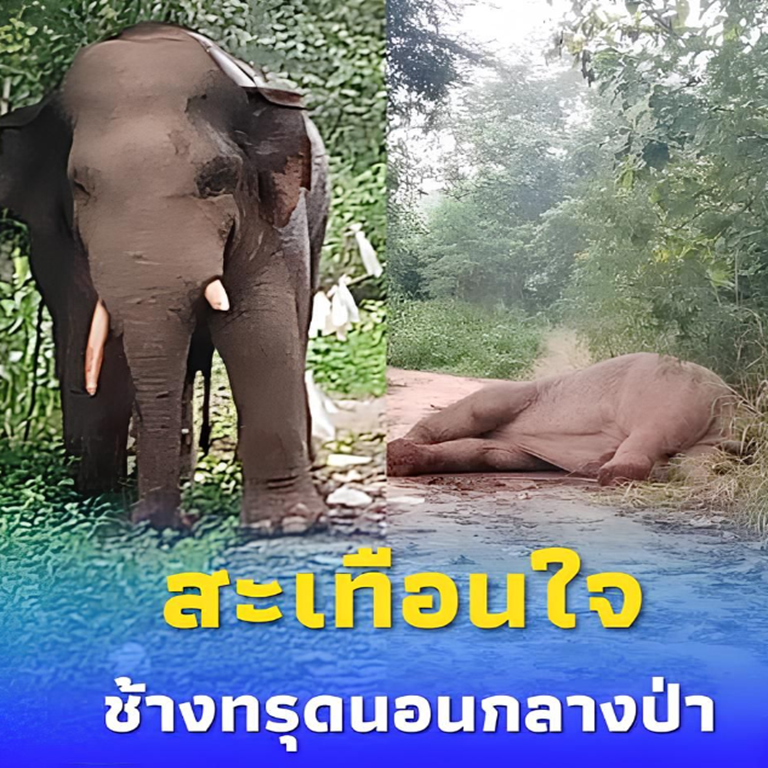 - โดยพบช้างป่าตัวดังกล่าวนอนราบอยู่กับพื้น มีเลือดออกบริเวณปลายงวง และมีอาการฉี่ราด-ถ่ายเหลว ซึ่งเป็นสัญญาณของอาการช็อกหรือบาดเจ็บ