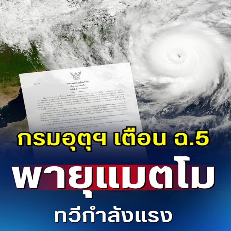 เมื่อวันที่ 4 ตุลาคม 2568 ศูนย์ประชาสัมพันธ์กรมอุตุนิยมวิทยา ประกาศกรมอุตุนิยมวิทยา เรื่อง พายุ แมตโม ฉบับที่ 5 (281/2568) โดยระบุว่า เมื่อเวลา 16.00 น. ของวันนี้ (4 ต.ค. 68) พายุโซนร้อนกำลังแรง แมตโม บริเวณทะเลจีนใต้ตอนบน มีศูนย์กลางอยู่ที่ละติจูด 18.5 องศาเหนือ ลองจิจูด 114.8 องศาตะวันออก ความเร็วลมสูงสุดใกล้ศูนย์กลางประมาณ 100 กิโลเมตรต่อชั่วโมง กำลังเคลื่อนตัวทางทิศตะวันตก ด้วยความเร็วประมาณ 25 กิโลเมตรต่อชั่วโมง