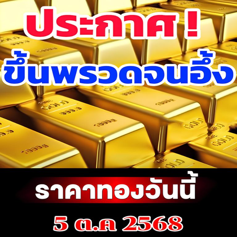 ราคาซื้อขายทองคําในประเทศชนิด 96.5% วันเสาร์ที่ 5 ตุลาคม 2568 (ประกาศครั้งเดียว)