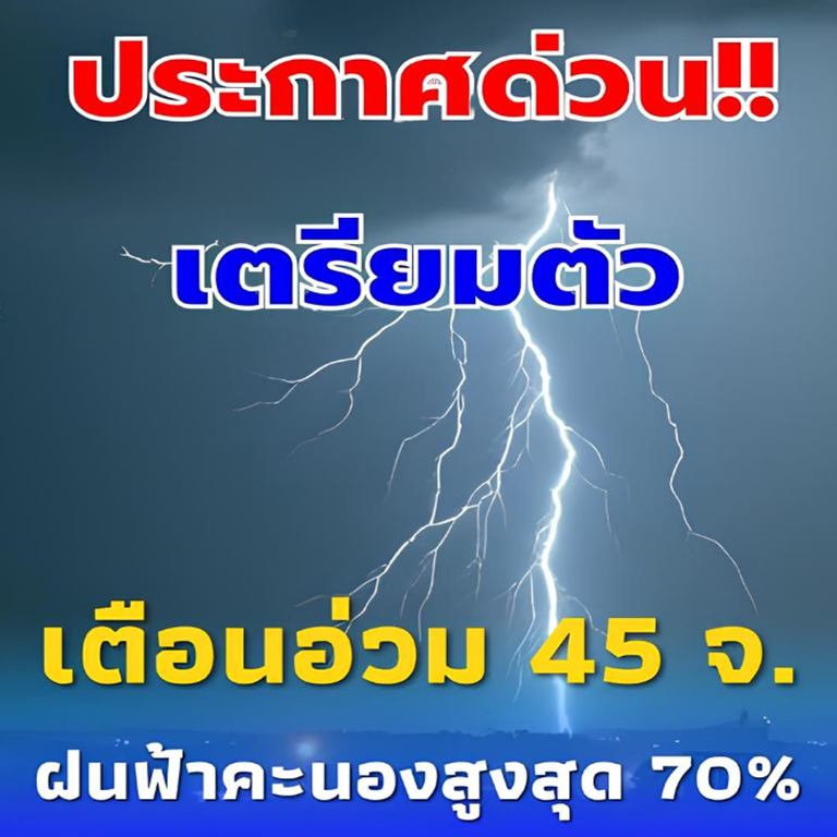 08 ต.ค. 2568กรมอุตุฯ เตือน 45 จังหวัดทั่วไทย ฝนฟ้าคะนองร้อยละ 70 กรุงเทพฯ เสี่ยงอ่วม ให้ประชาชนระวังอันตรายจากฝนตกหนักไว้ด้วย