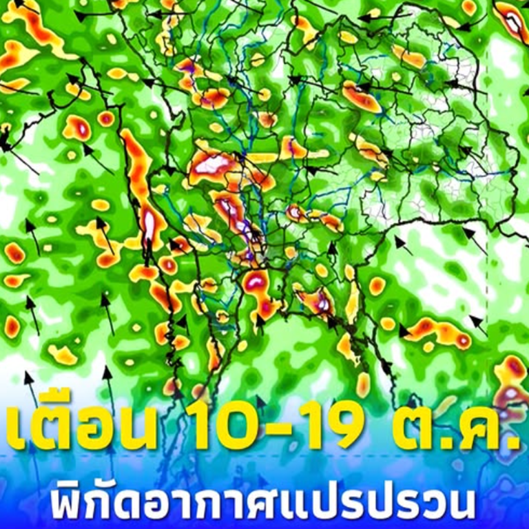 กรมอุตุนิยมวิทยา พยากรณ์อากาศ เตือนร่องมรสุมพาดผ่าน 10-19 ต.ค. 2568 เช็กพิกัดเจอฝนเพิ่ม ฝนตกหนัก ทิศทางลมแปรปรวน มวลอากาศเย็นเริ่มแผ่ลงมา