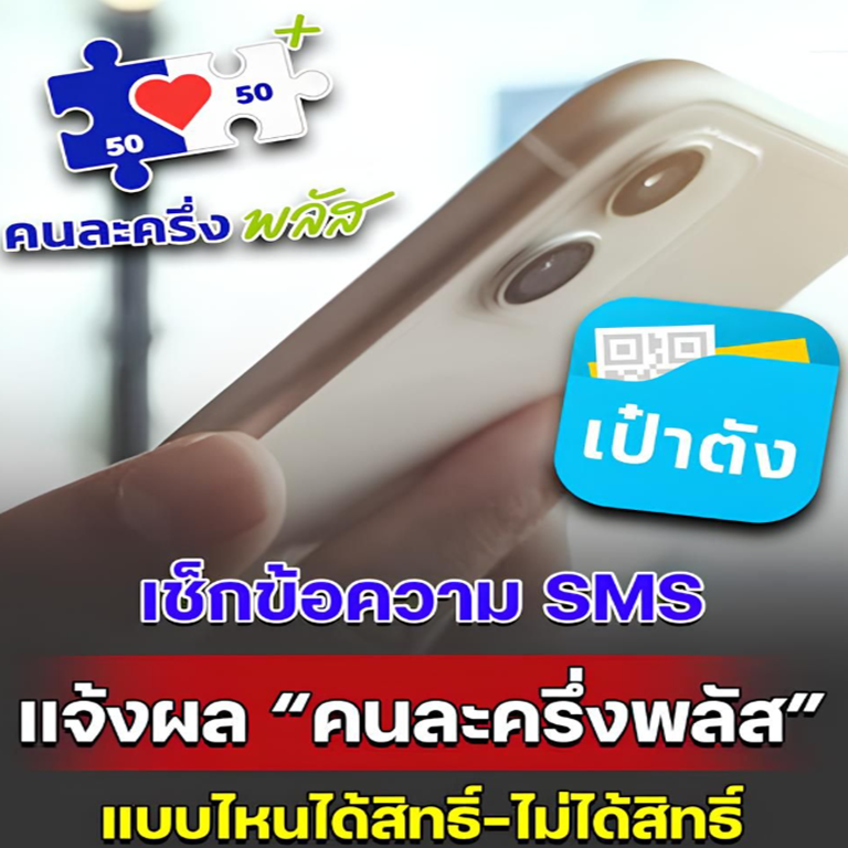 เช็กข้อความ SMS แจ้งผล คนละครึ่งพลัส แบบไหนได้สิทธิ์-ไม่ได้สิทธิ์