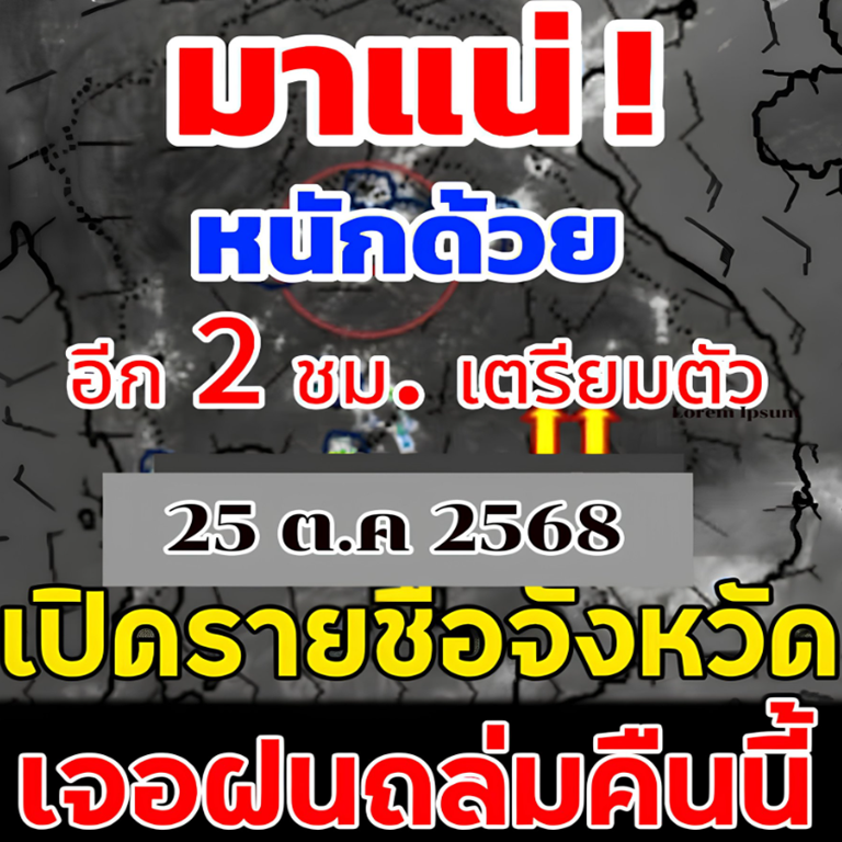 25 ตุลาคม 2568 พยากรณ์อากาศ 24 ชั่วโมงข้างหน้า ภาคใต้ตอนกลางถึงตอนล่างมีฝนตกหนักถึงหนักมากบางแห่ง ขอให้ประชาชนในบริเวณดังกล่าว โดยเฉพาะบริเวณจังหวัดประจวบคีรีขันธ์ ชุมพร สุราษฎร์ธานี นครศรีธรรมราช ระนอง พังงา ภูเก็ต และกระบี่ ระวังอันตรายจากฝนฟ้าคะนอง ฝนตกหนักถึงหนักมากและฝนที่ตกสะสม รวมทั้งเพิ่มความระมัดระวังในการสัญจรผ่านบริเวณที่มีน้ำท่วมขัง เนื่องจากร่องมรสุมกำลังค่อนข้างแรงพาดผ่านภาคใต้ตอนล่าง ประกอบกับมรสุมตะวันออกเฉียงเหนือกำลัง ปานกลางพัดปกคลุมอ่าวไทยตอนบน ภาคใต้ตอนบน และทะเลอันดามันตอนบน