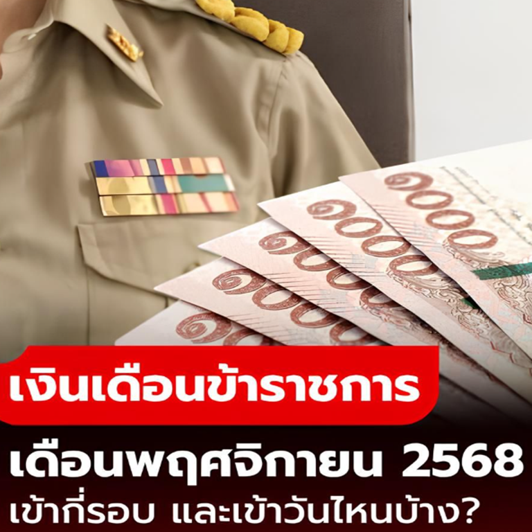 อัปเดต ข้าราชการ ลูกจ้างประจำ ข้าราชการบำนาญ ทหารกองประจำการ เช็กการจ่าย เงินเดือนข้าราชการ เดือนพฤศจิกายน 2568 เงินโอนเข้าบัญชีวันไหนบ้าง