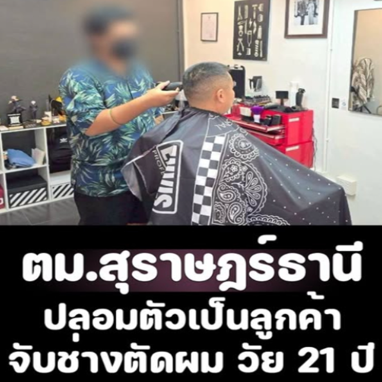 จากนั้นทางด้าน ด.ต.ชินศักดิ์ ชินฝั่น ผบ.หมู่ ตม.สุราษฎร์ธานี ได้แฝงตัวทำทีเป็นลูกค้าเข้าไปตัดผมที่ร้านดังกล่าว ซึ่งขณะนั้นภายในร้านมีช่างตัดผมชาวเมียนมาอยู่ในร้านเพียงคนเดียว หลังตัดผมไปได้สักพัก ด.ต.ชินศักดิ์ ก็ได้แสดงตัวเป็นเจ้าหน้าที่ตำรวจ พร้อมทั้งเจ้าหน้าที่อยู่ด้านนอกได้เข้ามาสมทบ ทำให้ช่างตัดผมชาวเมียนมาตกใจ แต่ทางเจ้าหน้าที่บอกว่าตัดให้เสร็จก่อน เดี๋ยวค่อยจับ