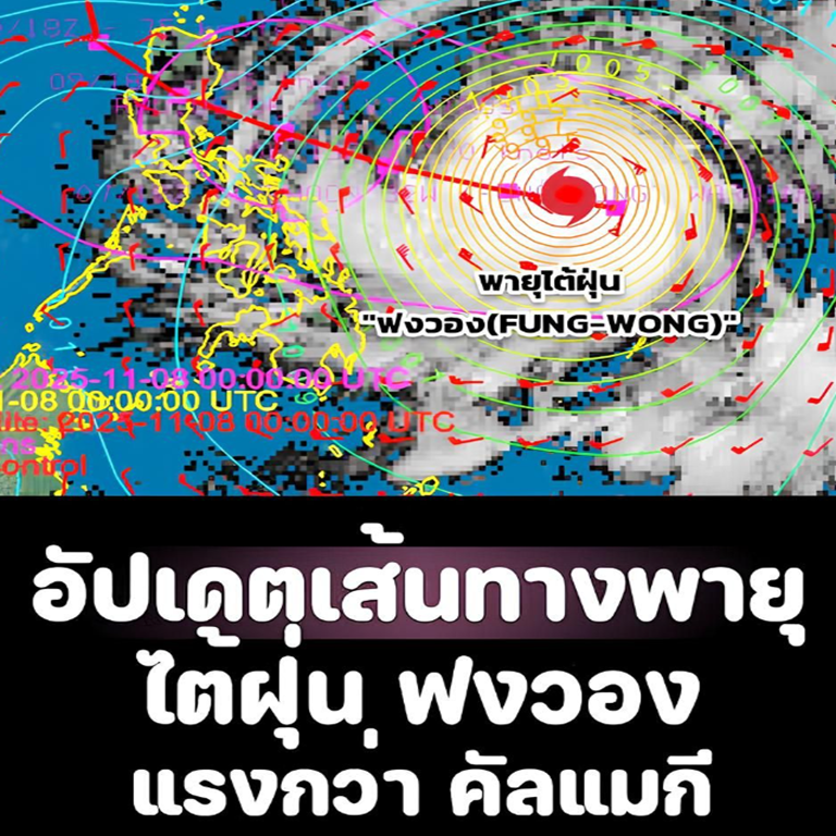 วันที่ 8 พฤศจิกายน 2568 เพจเฟซบุ๊ก กรมอุตุนิยมวิทยา รายงานว่า อัพเดทเส้นทางพายุ เช้าตรู่วันนี้ (8/11/68):พายุไต้ฝุ่น“ฟงวอง(FUNG-WONG)” ในมหาสมุทรแปซิฟิกตะวันตก(ด้านตะวันออกของฟิลิปปินส์) เวลา 04.00น. พายุฯกำลังเคลื่อนตัวทางตะวันตกเฉียงเหนือคาดว่าจะเคลื่อนผ่านเกาะลูซอลประเทศฟิลิปปินส์ ลงสู่ทะเลจีนใต้ตอนบน และช่วง 10-11 พ.ย.68 หลังจากนั้นจะเคลื่อนตัวทางทิศเหนือ ไปทางช่องแคบไต้หวัน และขึ้นฝั่งทางด้านตะวันออกของประเทศจีน