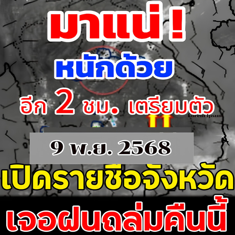 09 พฤศจิกายน 2568 พยากรณ์อากาศ 24 ชั่วโมงข้างหน้า ภาคเหนือมีฝนตกหนักบางแห่ง โดยเฉพาะบริเวณจังหวัดแม่ฮ่องสอน เชียงใหม่ เชียงราย ลำพูน ลำปาง พะเยา และตาก เนื่องจากหย่อมความกดอากาศต่ำปกคลุมด้านตะวันตกของภาคเหนือและประเทศเมียนมา ขอให้ประชาชนในบริเวณดังกล่าวระวังอันตรายจากฝนตกหนักและฝนที่ตกสะสม ซึ่งอาจทำให้เกิดน้ำท่วมฉับพลัน น้ำป่าไหลหลาก และน้ำล้นตลิ่ง โดยเฉพาะพื้นที่ลาดเชิงเขาใกล้ทางน้ำไหลผ่าน พื้นที่ลุ่ม และพื้นที่น้ำท่วมขัง ส่วนเกษตรกรควรป้องกันและระวังความเสียหายที่จะเกิดต่อผลผลิตทางการเกษตร