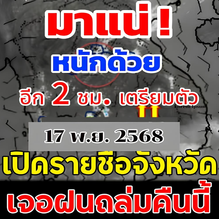 17 พฤศจิกายน 2568 พยากรณ์อากาศ 24 ชั่วโมงข้างหน้า ประเทศไทยตอนบนมีอากาศเย็นในตอนเช้ากับมีลมแรง โดยมีฝนฟ้าคะนองบางแห่งในภาคเหนือ ภาคตะวันออกเฉียงเหนือ และภาคตะวันออก เนื่องจากบริเวณความกดอากาศสูงหรือมวลอากาศเย็นกำลังปานกลางจากประเทศจีนปกคลุมบริเวณประเทศไทยตอนบน ขอให้ประชาชนในบริเวณดังกล่าวดูแลรักษาสุขภาพ เนื่องจากสภาพอากาศที่เปลี่ยนแปลงไว้ด้วย สำหรับภาคใต้มีฝนฟ้าคะนองบางแห่ง ส่วนคลื่นลมบริเวณอ่าวไทย และห่างฝั่งของทะเลอันดามันมีกำลังปานกลาง โดยมีคลื่นสูง 1-2 เมตร บริเวณที่มีฝนฟ้าคะนองคลื่นสูงมากกว่า 2 เมตร เนื่องจากมรสุมตะวันออกเฉียงเหนือพัดปกคลุมอ่าวไทย ภาคใต้ และทะเลอันดามัน ขอให้ชาวเรือบริเวณอ่าวไทยและทะเลอันดามัน เดินเรือด้วยความระมัดระวังและหลีกเลี่ยงการเดินเรือในบริเวณที่มีฝนฟ้าคะนอง