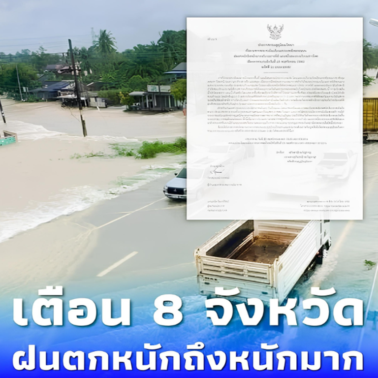 กรมอุตุนิยมวิทยา พยากรณ์อากาศ ประกาศฉบับที่ 21 เตือน 8 จังหวัดพื้นที่สีเหลือง-แดง ฝนตกหนักถึงหนักมากวันนี้ ระวังน้ำท่วมฉับพลัน
