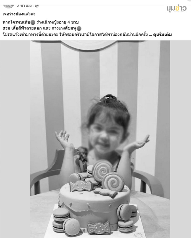 ล่าสุดคุณแม่ของน้องโพสต์แจ้งว่า เจอร่างน้องแล้ว