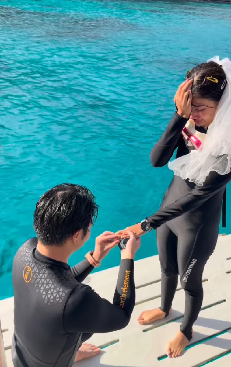 โมเมนต์ถูกขอแต่งงาน มะเหมี่ยวเผยว่า เป็นจังหวะที่ทั้งคู่ไปดำน้ำกับเรือที่คุ้นเคย คนบนเรือรวมถึงเจ้าของเรือและตากล้องรู้แผนล่วงหน้า แต่เธอไม่รู้มาก่อน โดยแฟนหนุ่มเพิ่งเรียนดำน้ำไม่นาน ทำให้การจัดเซอร์ไพรส์ครั้งนี้เป็นเรื่องยาก ยอมรับว่าตอนแรกคิดว่าจะไม่ร้องไห้ เพราะเป็นคนค่อนข้างเข้มแข็ง แต่สุดท้ายก็กลั้นไม่อยู่