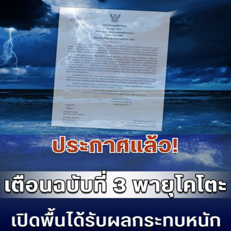 เมื่อวันที่ 27 พฤศจิกายน 2568 กรมอุตุนิยมวิทยา ประกาศ เรื่อง พายุ โคโตะ และอากาศหนาวเย็นบริเวณประเทศไทยตอนบน ฉบับที่ 3 (365/2568) (มีผลกระทบตั้งแต่วันที่ 27-30 พฤศจิกายน 2568)