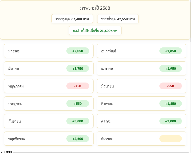 โดยมีถิติการปรับราคาทองขึ้น-ลงในแต่ละเดือนดังนี้
