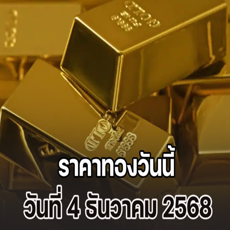 รายงานราคาทองวันนี้ประจำวันพฤหัสบดีที่ 4 ธันวาคม 2568 ประกาศครั้งที่ 1 (เปิดตลาด) เมื่อเวลา 09.01 น. ปรับเพิ่มขึ้น 100 บ.