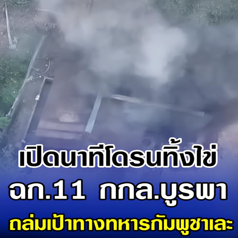 โดรนทิ้งระเบิดถล่ม เปิดคลิป! ฉก.11 กกล.บูรพา เปิดปฏิบัติการถล่มเป้าหมายทางทหารกัมพูชา ใกล้คลองแผง หลังพบจัดเป็นที่ตั้งกำลังยิงทหารไทยเมื่อวันที่ 10 ธ.ค.68 รายงานข่าวจากกองทัพภาคที่หนึ่งเปิดเผยว่า วานนี้ (9 ธ.ค.) หน่วยเฉพาะกิจที่ 11 กองกำลังบูรพา กองทัพภาคที่ 1 (ฉก.11 กกล.บูรพา) ได้ปฏิบัติการ ทำลายเป้าหมายทางทหาร ฐานปฎิบัติการทหารกัมพูชา