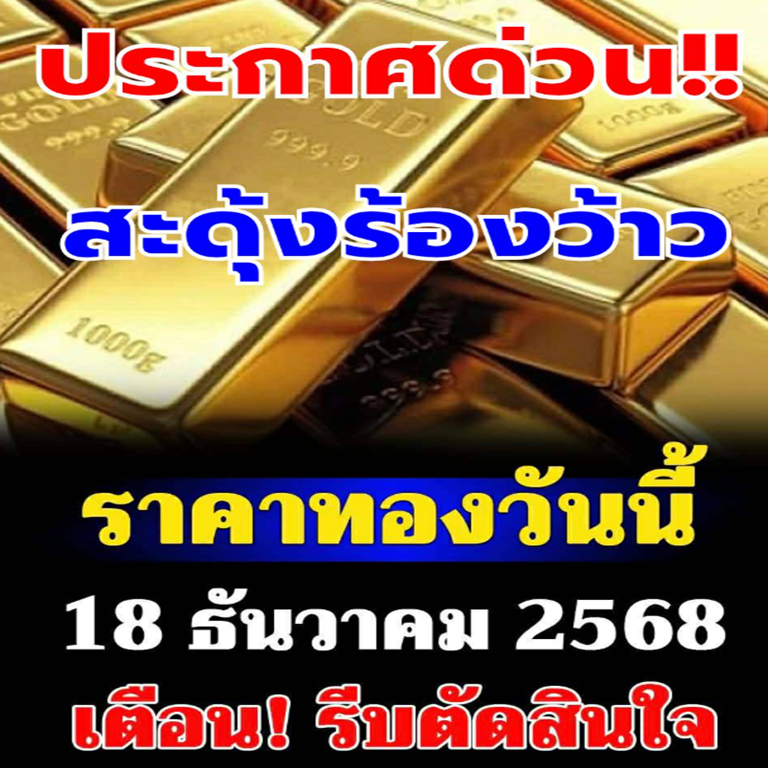 ด่วน!! ราคาทองวันนี้ 18 ธันวาคม 2568