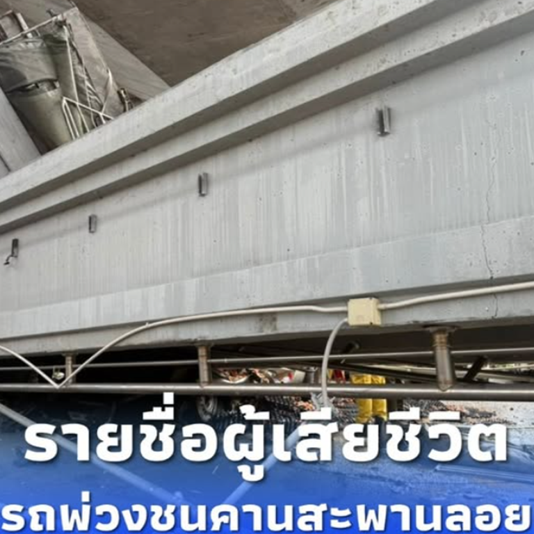 รายชื่อผู้บาดเจ็บและเสียชีวิต เหตุรถบรรทุกพ่วง22ล้อ ยกดัมพ์พ่วงค้าง ชนเข้ากับสะพานลอย บริเวณถนนบางนา-ตราด กม.34 ถล่มลงมาทับรถ