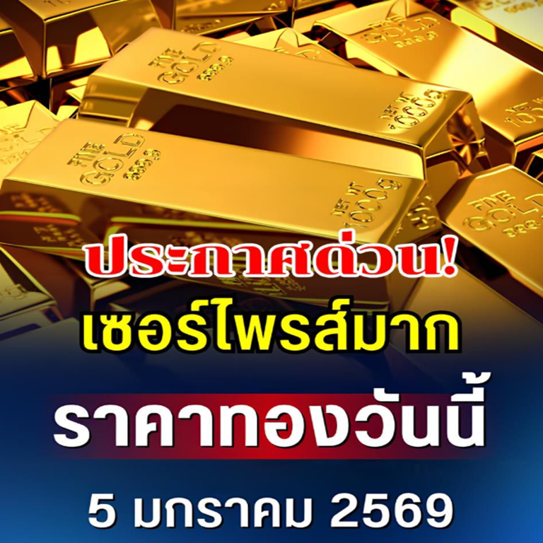 ราคาทองวันนี้ 5 มกราคม 2569 โดย สมาคมค้าทองคำ ประกาศราคาทองครั้งที่ 1 (เปิดตลาด) เมื่อเวลา 09.08 น. ปรับตัวขึ้น 550 บาท บาท สู่บริเวณ 65,500 บาท เมื่อเทียบกับประกาศราคาซื้อขายครั้งเดียวของวันเสาร์ที่ปรับตัวลดลง 300 บาท สู่บริเวณ 64,950 ส่วนสัปดาห์ที่แล้วราคาทองคำมีการปรับตัวลดลง รวม 1,550 บาท