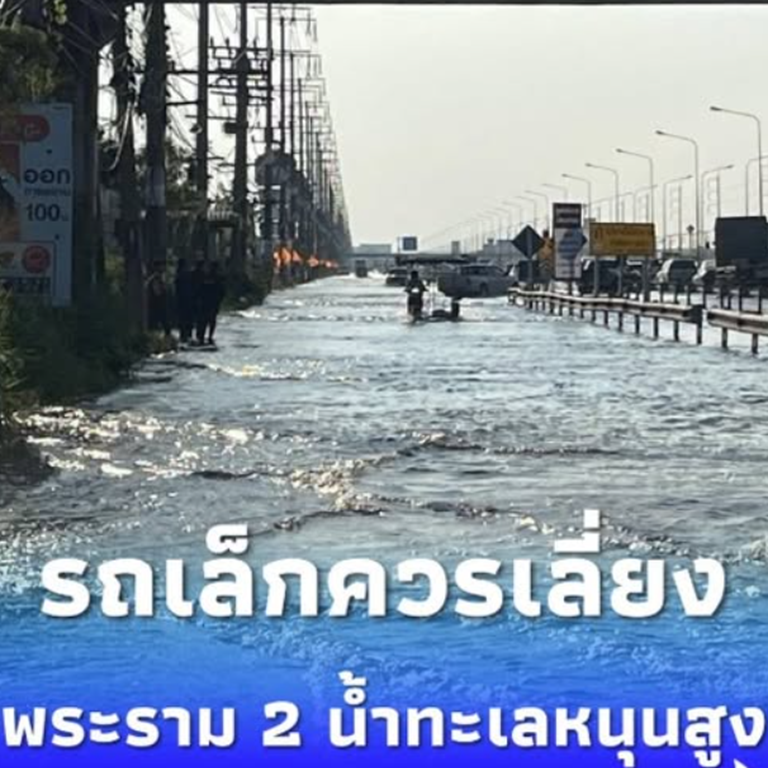 ด่วน!! ถนนพระราม 2 น้ำทะเลหนุนสูง จราจรหนาแน่น แนะรถเล็กเลี่ยงด่วน