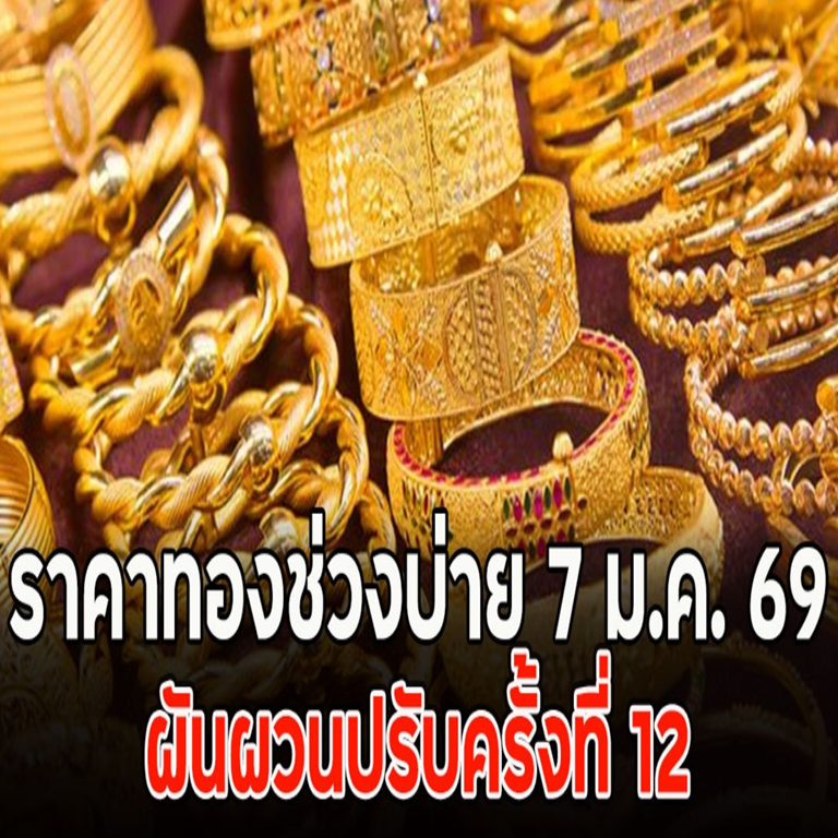 ราคาทองคำวันนี้ (7 ม.ค. 2569) ดีดขึ้น 200 บาท เปรียบเทียบกับราคาปิดเมื่อวานนี้ โดยราคาทองรูปพรรณขยับมาอยู่ที่บาทละ 66,700.00 บาท ตามข้อมูลล่าสุด จากเว็บไซต์ของสมาคมค้าทองคำ เมื่อเวลา 13:08 ที่ผ่านมา ปรับครั้งที่ 12