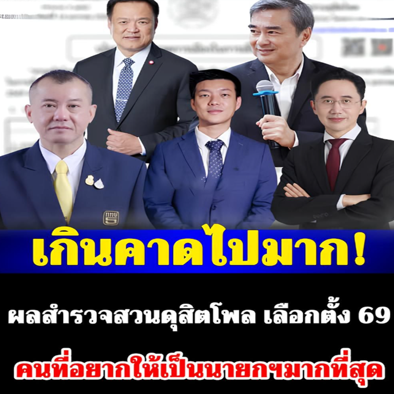 สวนดุสิตโพล” มหาวิทยาลัยสวนดุสิต ส ารวจความคิดเห็นประชาชนทั่วประเทศ เรื่อง “นโยบายกับพรรคการเมืองใน การเลือกตั้ง 69” กลุ่มตัวอย่าง จานวน 2,586 คน (สารวจทางออนไลน์และภาคสนาม) ระหว่างวันที่ 13-16 มกราคม 2569 พบว่า พรรคประชาชนถือเป็นพรรคที่มีความได้เปรียบมากที่สุดถึง 4 นโยบาย คือ ด้านการเมืองและความมั่นคง ร้อยละ 38.14 ด้านการศึกษา ร้อยละ 43.93 ด้านการเกษตร ร้อยละ 35.82 และด้านการแก้ปัญหาทุจริตคอร์รัปชัน ร้อยละ 39.89 ส่วนพรรค เพื่อไทยมีความได้เปรียบ 1 นโยบาย คือ ด้านปากท้อง/ค่าครองชีพ ร้อยละ 35.63 ทั้งนี้ถ้ามีการเลือกตั้ง กลุ่มตัวอย่างจะเลือก พรรคประชาชน ร้อยละ 34.11 รองลงมาคือ เพื่อไทย ร้อยละ 18.37 และเลือก สส.เขตสังกัดพรรคประชาชน ร้อยละ 33.14 รองลงมาคือ เพื่อไทย ร้อยละ 19.49 โดยบุคคลที่อยากให้เป็นนายกรัฐมนตรีคนต่อไป คือ ณัฐพงษ์ (ปชน.) ร้อยละ 34.34 ยศชนัน (พท.) ร้อยละ 19.91 และอนุทิน (ภท.) ร้อยละ 16.13