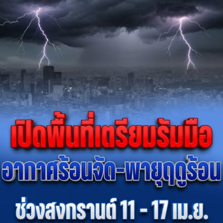 ในช่วงวันที่ 11 – 16 เม.ย. 69 อากาศร้อนโดยทั่วไป และมีอากาศร้อนจัดบางพื้นที่ กับมีฟ้าหลัวในตอนกลางวัน