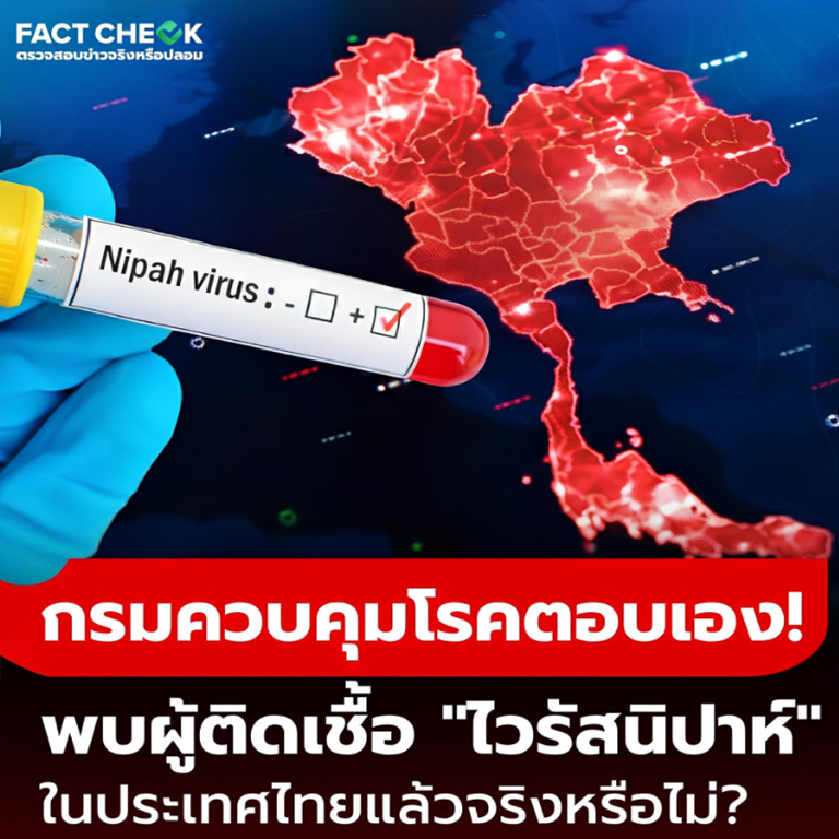 จากการตรวจสอบในเชิงลึกพบว่า ปัจจุบันประเทศไทยยังไม่มีรายงานการพบผู้ป่วยที่ติดเชื้อไวรัสนิปาห์ภายในประเทศแต่อย่างใด แม้ไวรัสชนิดนี้จะเป็นโรคติดต่อที่ต้องเฝ้าระวังและมีอันตรายสูง แต่ระบบคัดกรองและมาตรการควบคุมโรคของประเทศไทยยังคงทำงานอย่างต่อเนื่องตามมาตรฐานสากล ข้อมูลที่นำมาแชร์นั้นเป็นการนำข้อเท็จจริงบางส่วนมาผสมกับข้อมูลเท็จเพื่อสร้างความตื่นตระหนก