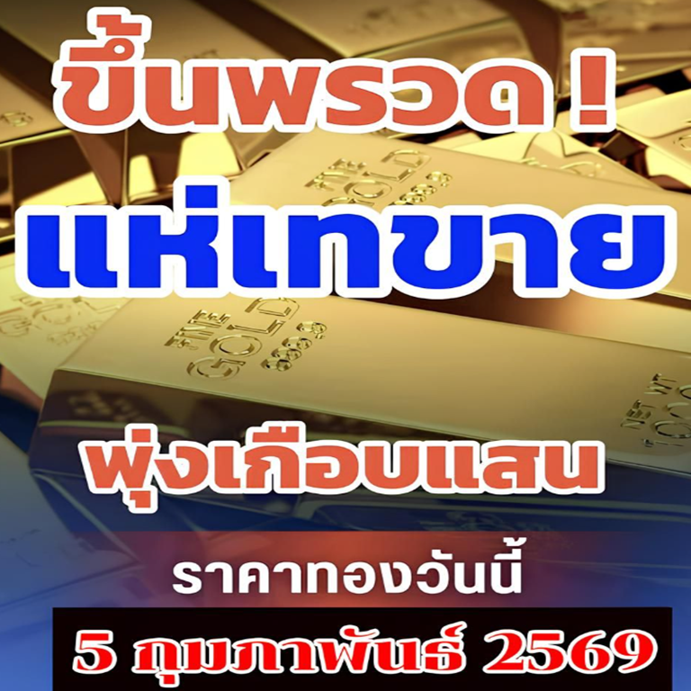 ราคาทองวันนี้ 5 กุมภาพันธ์ 2569 โดย สมาคมค้าทองคำ ประกาศราคาทองครั้งที่ 1 (เปิดตลาด) เมื่อเวลา 09.06 น. ปรับตัวแรงพรวดเดียว 1,200 บาท สู่บริเวณ 74,500 บาท ต่อมาเวลา 09.17 น. ปรับครั้งที่ 4 ลงอีก 100 รวมปรับลงแล้ว 1,700 บาท