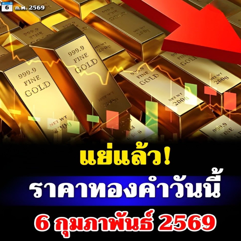 ราคาทองวันนี้ 6 กุมภาพันธ์ 2569 โดย สมาคมค้าทองคำ ประกาศราคาทองครั้งที่ 1 (เปิดตลาด) เมื่อเวลา 09.05 น. ปรับลงพรวดเดียว 1,300 บาท สู่บริเวณ 72,000 บาท