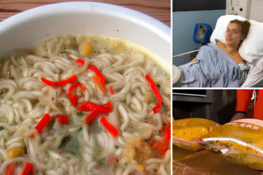 หากใครที่เคยได้ยินเรื่องอาหารที่ห้ามกินคู่กัน 1 ในนั้น ก็จะมีบะหมี่กึ่งสำเร็จรูปและน้ำอัดลมที่เป็นของแสลงห้ามกินคู่กัน เพราะมันจะไปทำปฏิกริยาร่วมกันในกระเพาะ อาจจะทำให้ท้องอืด ปวดท้อง และถึงขั้น เข้าโรงพยาบาล เรื่องนี้ยังยืนยันไม่ได้ว่าเป็นเรื่องจริงหรือเปล่า แต่วันนี้ มีตัวอย่างที่เกิดขึ้นจริงกับหนุ่มคนหนึ่งในประเทศจีน ที่เขาได้ทาน บะหมี่กึ่งสำเร็จรูป มันเทศ และน้ำอัดลม จนทำให้เขามีอาการแบบนี้ .. ที่เมืองหางโจว ประเทศจีน มีผู้ชายคนหนึ่งต้องเข้ารับการรักษาฉุกเฉินเนื่องจากปวดท้องมาก หลังจากที่เขาได้สแกน X-ray หมอตรวจพบว่ากระเพาะของเขาขยายตัวขึ้นผิดปกติ จึงตัดสินใจต่อท่อเพื่อนำลมภายในกระเพาะออกมา…