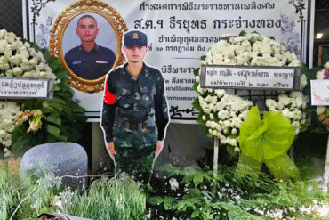 จากเหตุการณ์ปะทะกันระหว่างชายแดนไทย-กัมพูชา ส่งผลให้มีผู้เสียชีวิตหลายราย รวมถึงทหารแนวหน้าของไทยด้วย โดยศพของพลทหาร ธีรยุทธ กระจ่างทอง หรือ ส.ต.ธีรยุทธ กระจ่างทอง ล่าสุดซึ่งตั้งไว้ที่วัดบ้านยางโป่งสะเดา ต.ตาจง อ.ละหานทราย จ.บุรีรัมย์ เตรียมจะฌาปนกิจศพเวลา 15.00 น. ภายในวันนี้ หลังจากเสียชีวิตจากการปะทะกับทหารกัมพูชาเมื่อวันที่ 29 ก.ค. 68 ที่ อ.กันทรลักษณ์ จ.ศรีสะเกษ โดยบรรยากาศในงานยังเต็มไปด้วยความโศกเศร้า…